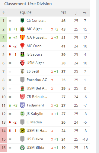 ترتيب الدوري الجزائري للقسم الاول الجولة 25