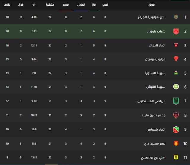 جدول ترتيب الرابطة المحترفة الأولى بعد الدوري الجزائري 2020 2019 Facebook