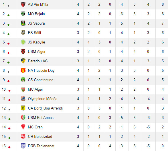 الرابطة الاولى الجزائرية 2018 2019 النتائج و الترتيب بعد الجولة الرابعة