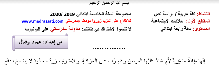 تقويم شهر نوفمبر في مادة اللغة العربية سنة رابعة