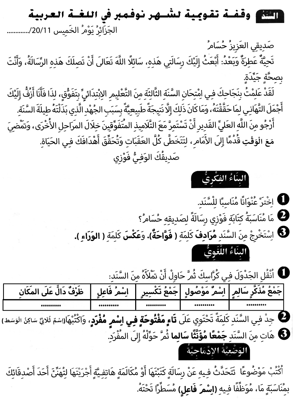 وقفة تقويمية لشهر نوفمبر في اللغة العربية للسنة الثالثة