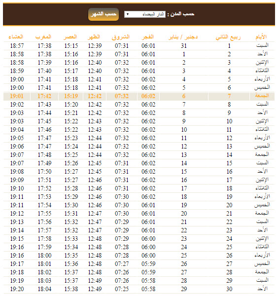 مواقيت الصلاة لشهر جمادى الثانية 1441 بالمغرب جهة الدار البيضاء الكبرى Morocco Prayer Time Mawdo3 Speak English